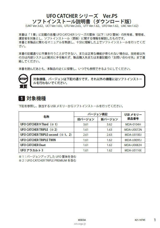 AM機器 UFOキャッチャーシリーズアップデートファイル