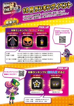 『BINGO THEATER』10月ランキングイベント告知POP をご用意いたしました。店舗販促活動にご活用いただけますようお願い申し上げます。尚、使用時には以下の事項に注意ください。