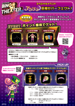 『BINGO THEATER』スペシャルイベント「アラジン 目指せパーフェクト!」 告知POP をご用意いたしました。店舗販促活動にご活用いただけますようお願い申し上げます。尚、使用時には以下の事項に注意ください。