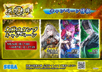 『英傑大戦 七海の彩旗』Ver.3.0.0E 稼働告知&大戦スタンプキャンペーン