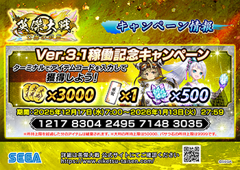 『英傑大戦 七海の彩旗』Ver.3.1.0/Ver.3.1.0A 稼働告知 & Ver.3.1稼働記念キャンペーン