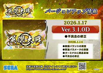 『英傑大戦 七海の彩旗』Ver.3.1.0D 稼働告知