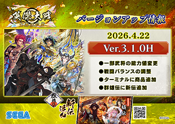 『英傑大戦 七海の彩旗』Ver.3.1.0H 稼働告知&大戦スタンプキャンペーン