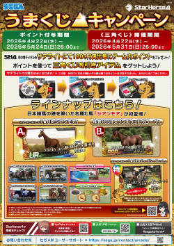 『StarHorse4』第11回 うまくじ▲キャンペーン告知POP をご用意いたしました。店舗販促活動にご活用いただけますようお願い申し上げます。尚、使用時には以下の事項に注意ください。